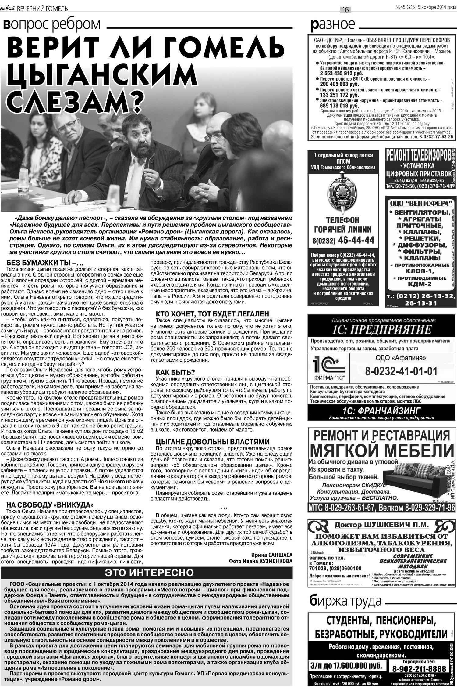 05.11.2014 "Вечерка" за 05.11.2014 №45