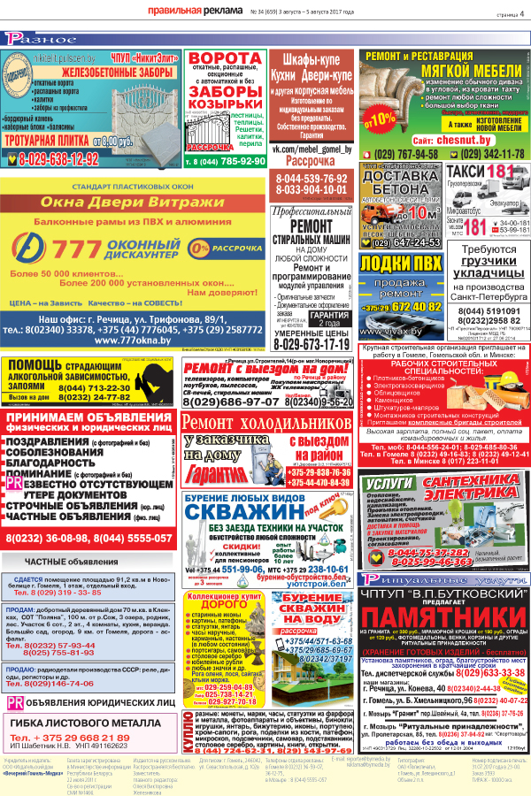 11.08.2017 «Правильная реклама Гомель и область» от 03.08-05.08.2017