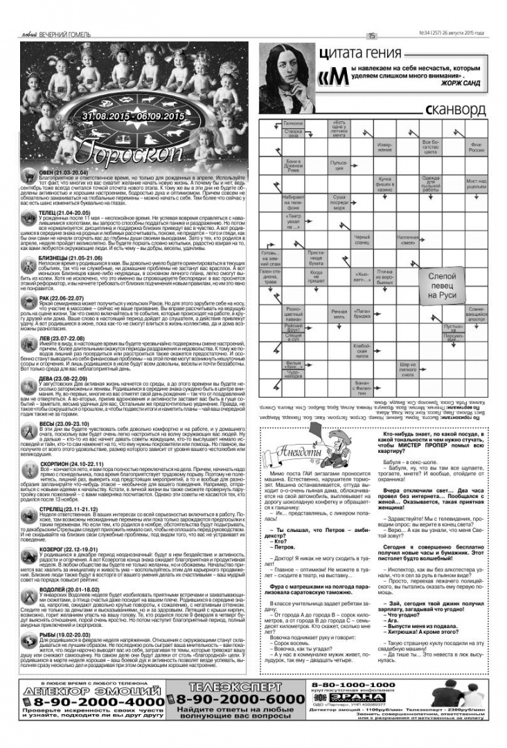 26.08.2015 "Вечерка" № 34 за 28.08.2015