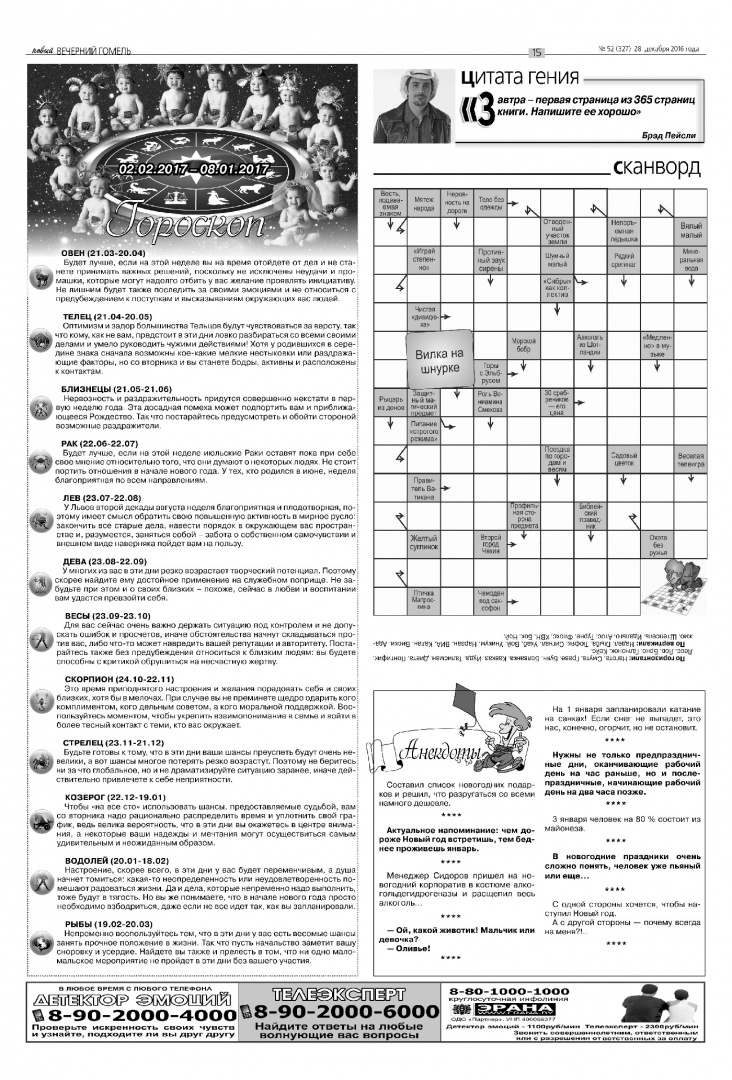 28.12.2016 "Вечерка" № 52 за 28.12.2016