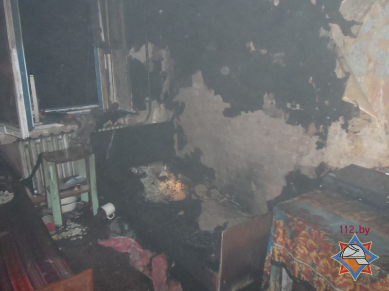 В результате пожара повреждены постельные принадлежности, мебель в комнате. Предполагаемая причина пожара – неосторожное обращение с огнем при курении, сообщает пресс-служба Гомельского ОУМЧС.