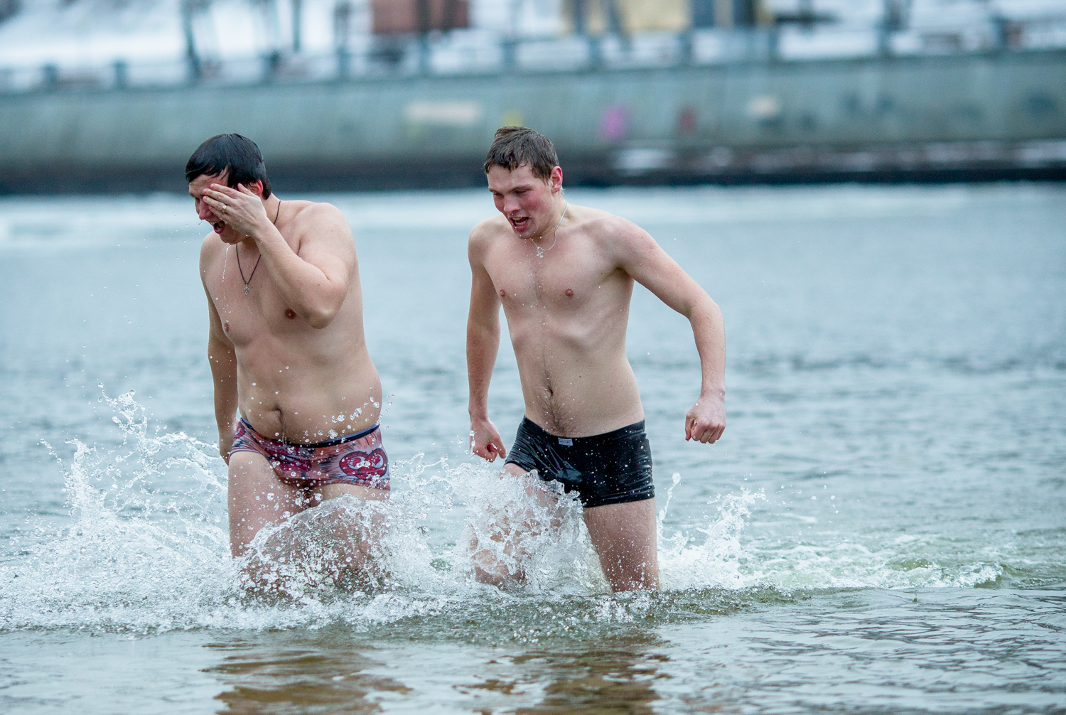 Купаться в проруби на Крещение нынче стало мейнстримом. В этом году еще и погодные условия способствовали тому, чтобы перебороть себя и нырнуть в зимнюю реку (сделать это при +2 градусах проще, нежели при -20). А еще и Сож в этом году приготовил огромную полынью - леда на реке практически нет.