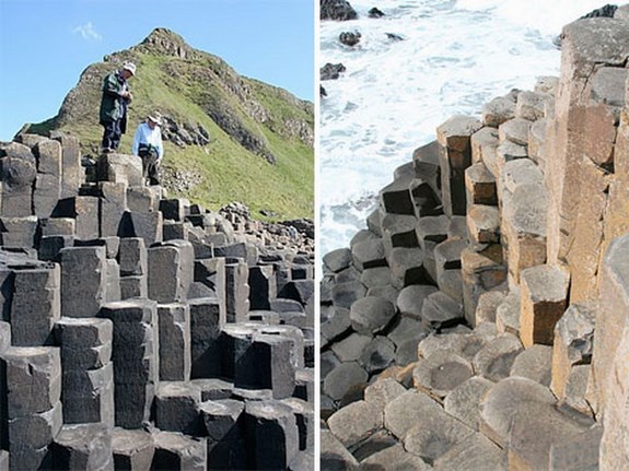 Базальтовые колонны Дороги гигантов в графстве Антрим – исключительно природный феномен, результат древнего извержения вулкана. Жидкий базальт, обладающий повышенной текучестью, около 50-60 миллионов лет назад сформировал громадное плато из лавы, а после охлаждения оно стянулось подобно высохшей грязи. Местная легенда гласит, что эта долина была частью пути через Северный пролив и давала гигантам возможность встречаться, откуда и пошло название этого места.