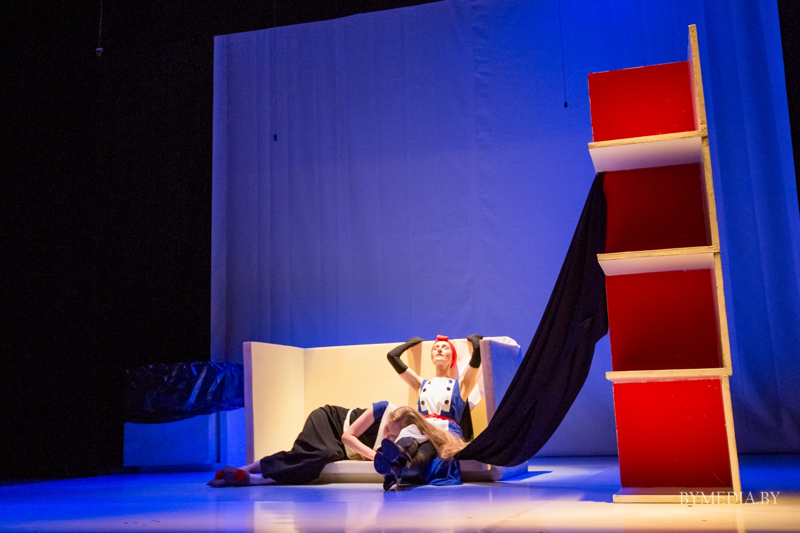 Переключиться на мобильную версию.Сегодня Гомельский госудаственный театр кукол презентует новую постановку – спектакля по пьесе Г.Ибсена «Gedda Gabler».Это спектакль в четырех углах и четырех цветах – белом, черном, синем и красном. Игра светом, эмоциями, клубами дыма, летающими перышками и шарами-пулями, игра с солнечным зайчиком…