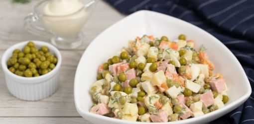 Начнем с главного ингредиента салата — майонеза. Оригинальный французский соус готовят из взбитых яичных желтков, лимонного сока и растительного масла.