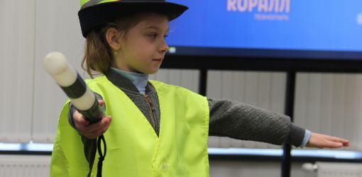 И одной из самых запоминающихся частей тренинга для ребят было повторение жестов регулировщика. Все желающие могли примерить на себе форму инспектора ДПС, подержать в руках жезл и с помощью сотрудника ГАИ вспомнить, что означает каждый из трех жестов регулировщика.