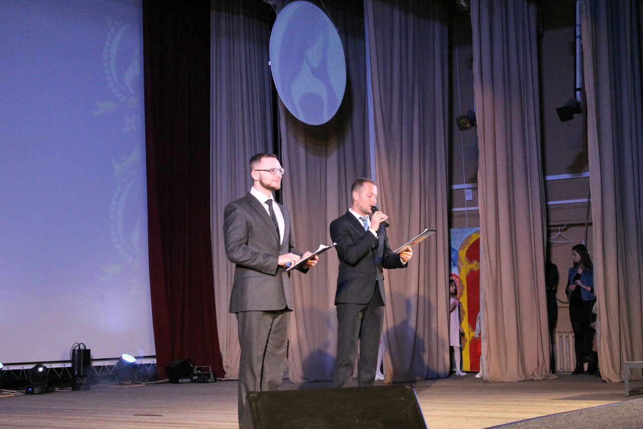Зрители и группы поддержки стремительно заполнили зал университета. Вели мероприятие и постоянно находились вблизи участниц, чему можно было только позавидовать, Александр Лупиненко – ведущий канала «Беларусь4» и Игорь Носульчик – ведущий радио 107.4 FM.